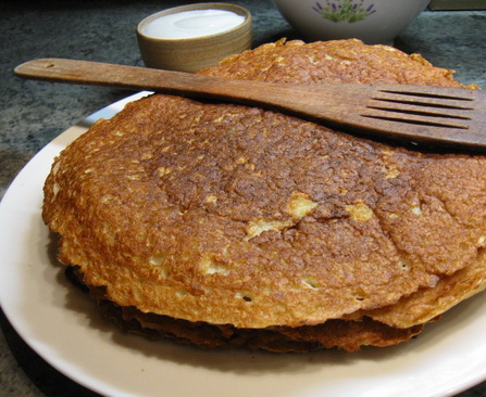 В результате получается, фактически, большой дырун, который жарят на растительном масле. Точнее данный рецепт рассчитан на 3 больших дыруна, потому, что съесть больше крайне проблематично. Правда, в старину люди много и тяжело работали физически, так что, вполне могли приговорить и целую горку подобных калорийных блинчиков. Ели эту подольскую вкусноту со сметаной и зеленью, с жареными грибами и, конечно же – с луком и шкварками.